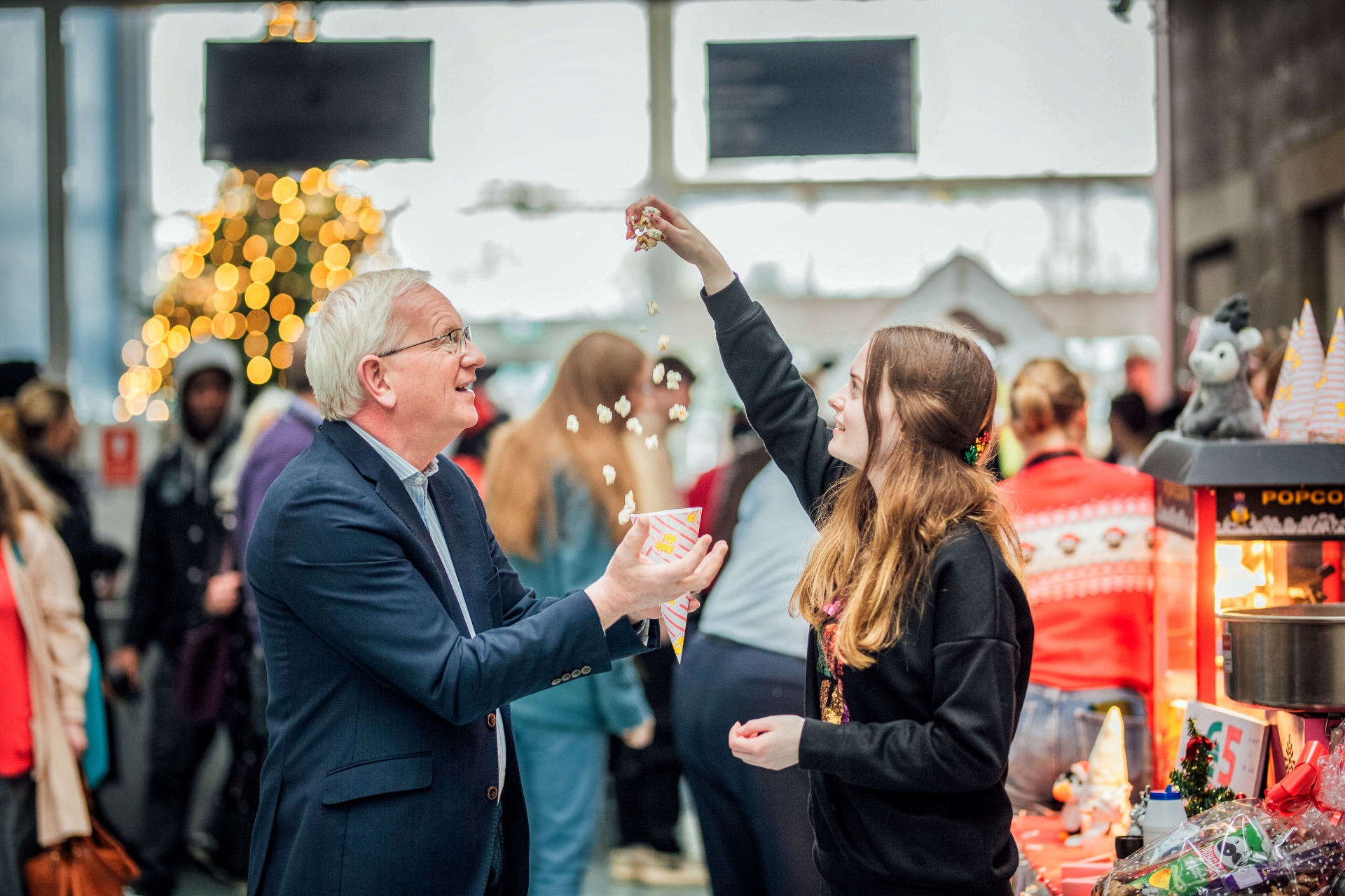 Tomas McGrath from Thomond Primary School is given free candy floss for singing Christmas carols from Linda Duggan at her stall | PICTURE: Brian Arthur