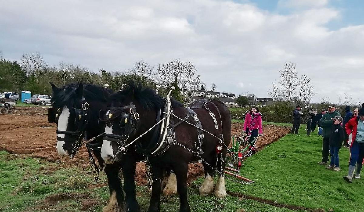 Ferbane native and country music star Olivia Douglas ploughing with Eamon Egan's horses at the Longford Ploughing Championships at Higginstown, Granard in 2019