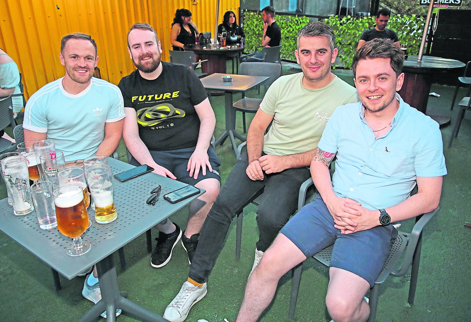Caption: Conor Jones, Séan Kane, Aaron Courtney and Dessie Guihen enjoying the craic at the Golden Oldies Disco Show in Eddie Valentine's, Longford town last Friday night