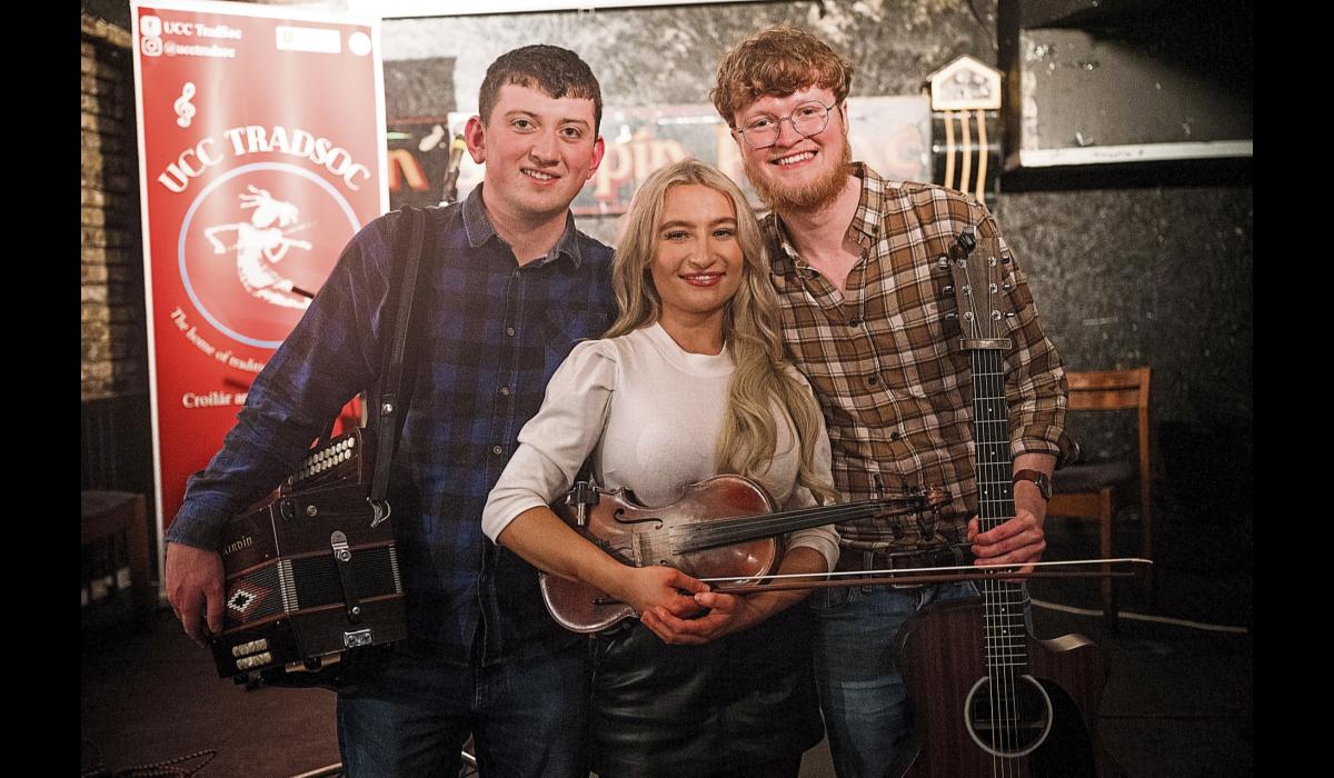 The members of Lasta - Darren Culliney (button accordion and keys), Orla Leavy (fiddle) and Jordan Lively (vocals and guitar)