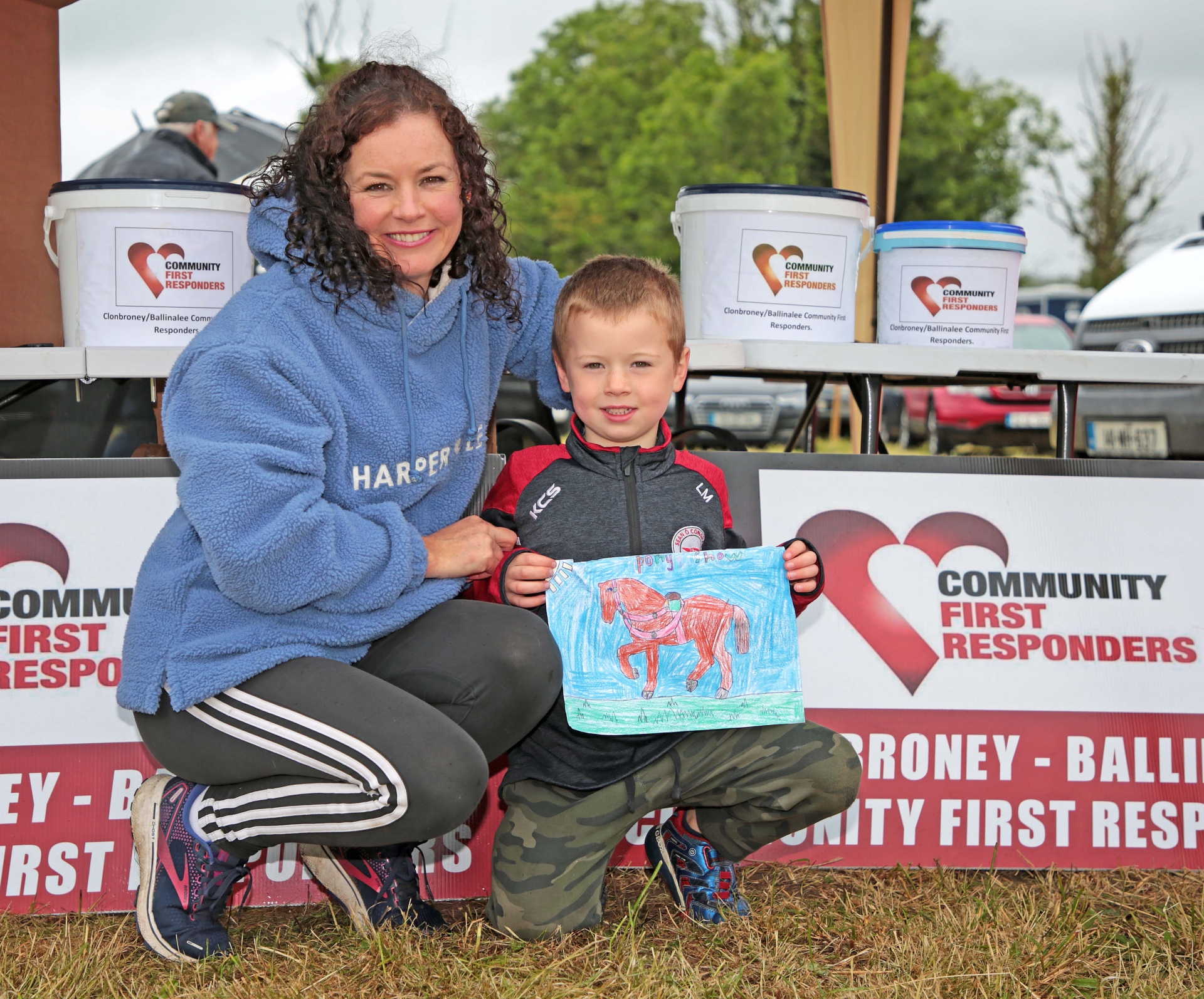 Caption: Helen Smith and Leo Murtagh at the Clonbroney/Ballinalee CFR stand on Sunday during Ballinalee Connemara Pony Show