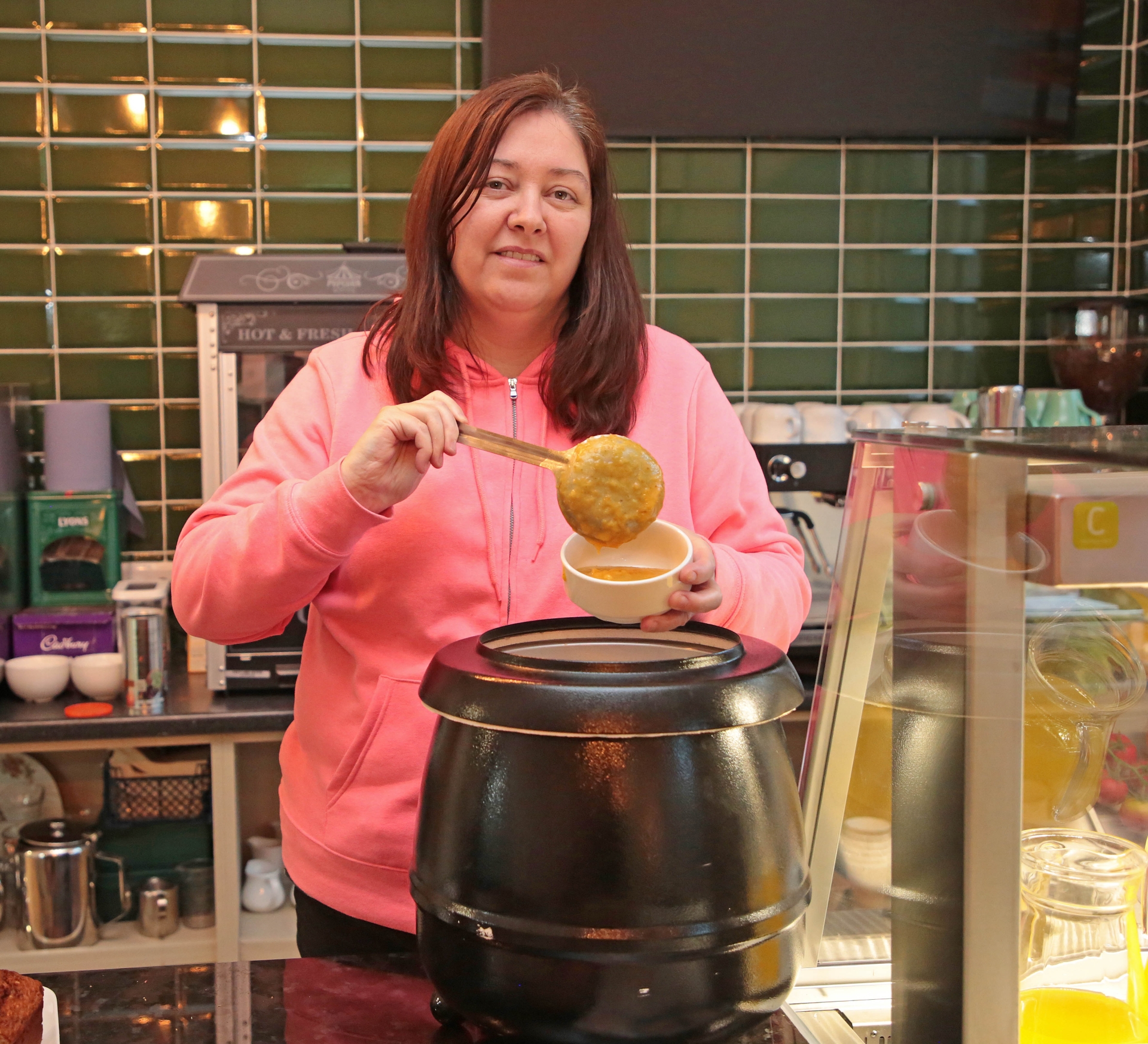 CAPTION: Ber Fagan serving up soup at Lus na Gréine Picture: Shelley Corcoran