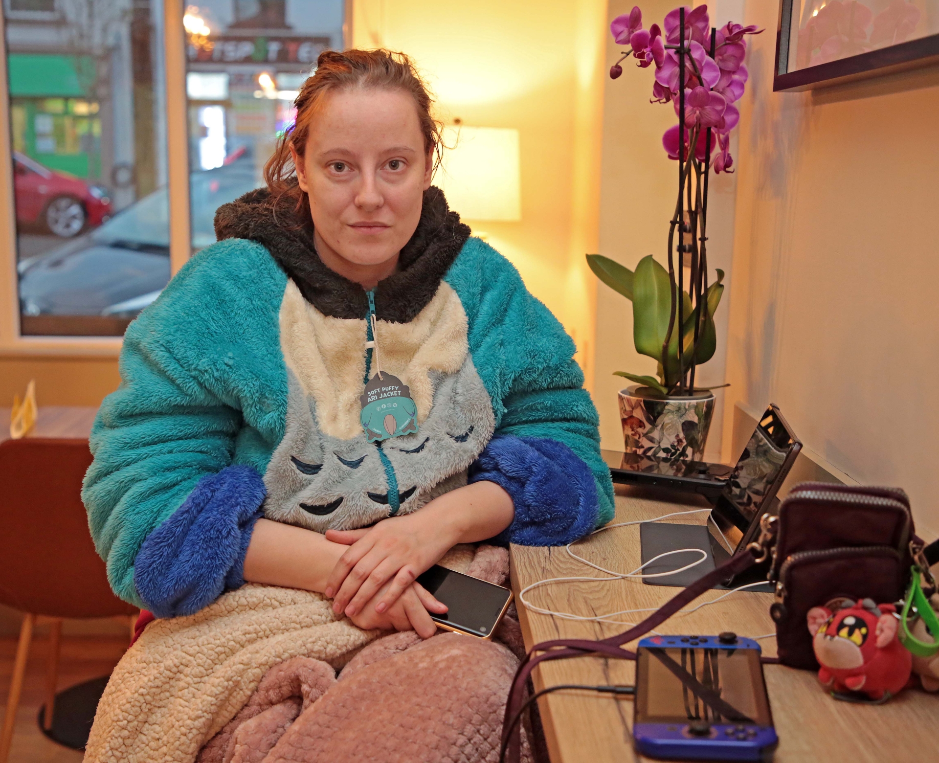 CAPTION: Marisa Kiernan in Lus na Gréine to make contact with family and friends after Storm Éowyn hit WiFi and broadband connectivity Picture: Shelley Corcoran