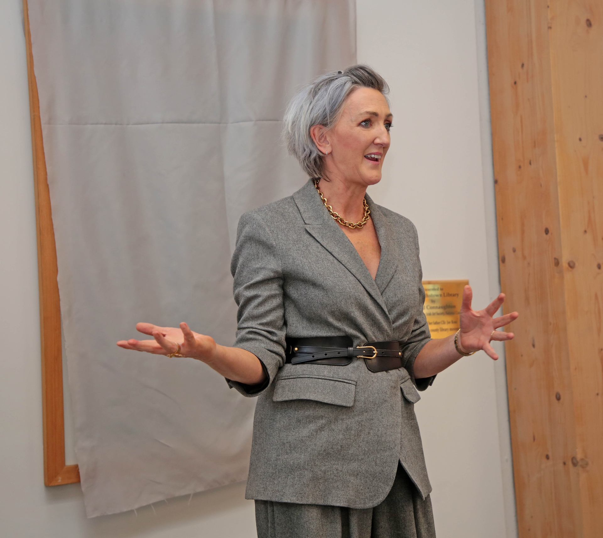 Caption: Joan Mulvihill, board member of Contemporary Irish Art Society pictured at the unveiling of the painting selected by the Contemporary Irish Art Society which was recently donated to Edgeworthstown Library on behalf of Brigid Connaughton, retiring CIAS board member Picture: Shelley Corcoran