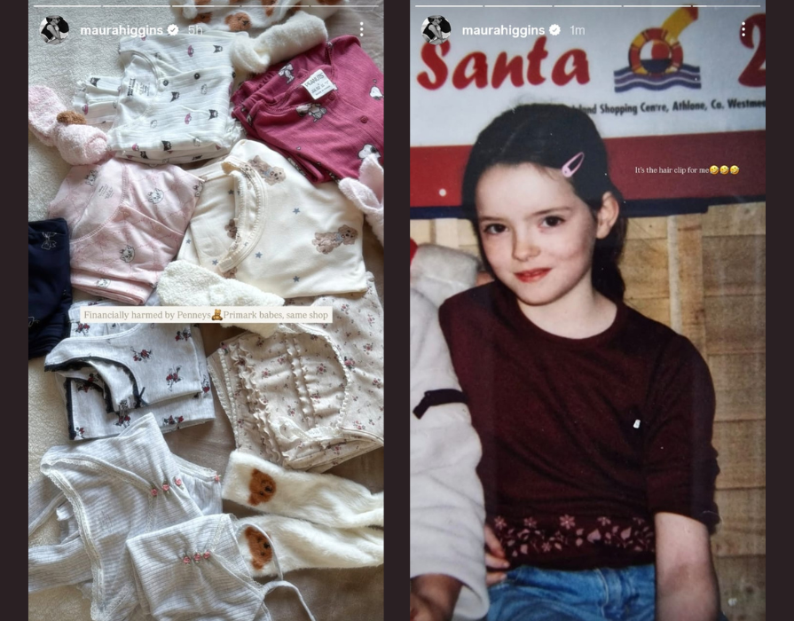 Earlier this evening however, Maura uploaded the cutest Christmas throwback of herself at just 4 years old, wearing a Bosco t-shirt on Christmas morning and standing beside one of her Santa presents, a baby pram.