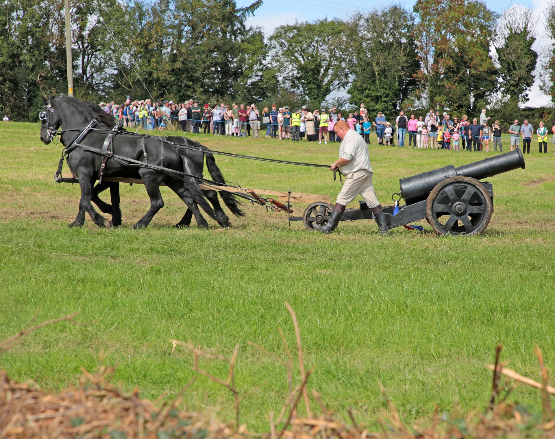 Caption: A volunteer keeps control of a pair of horses during last weekend's Battle of Ballinamuck reenactment Picture: Shelley Corcoran
