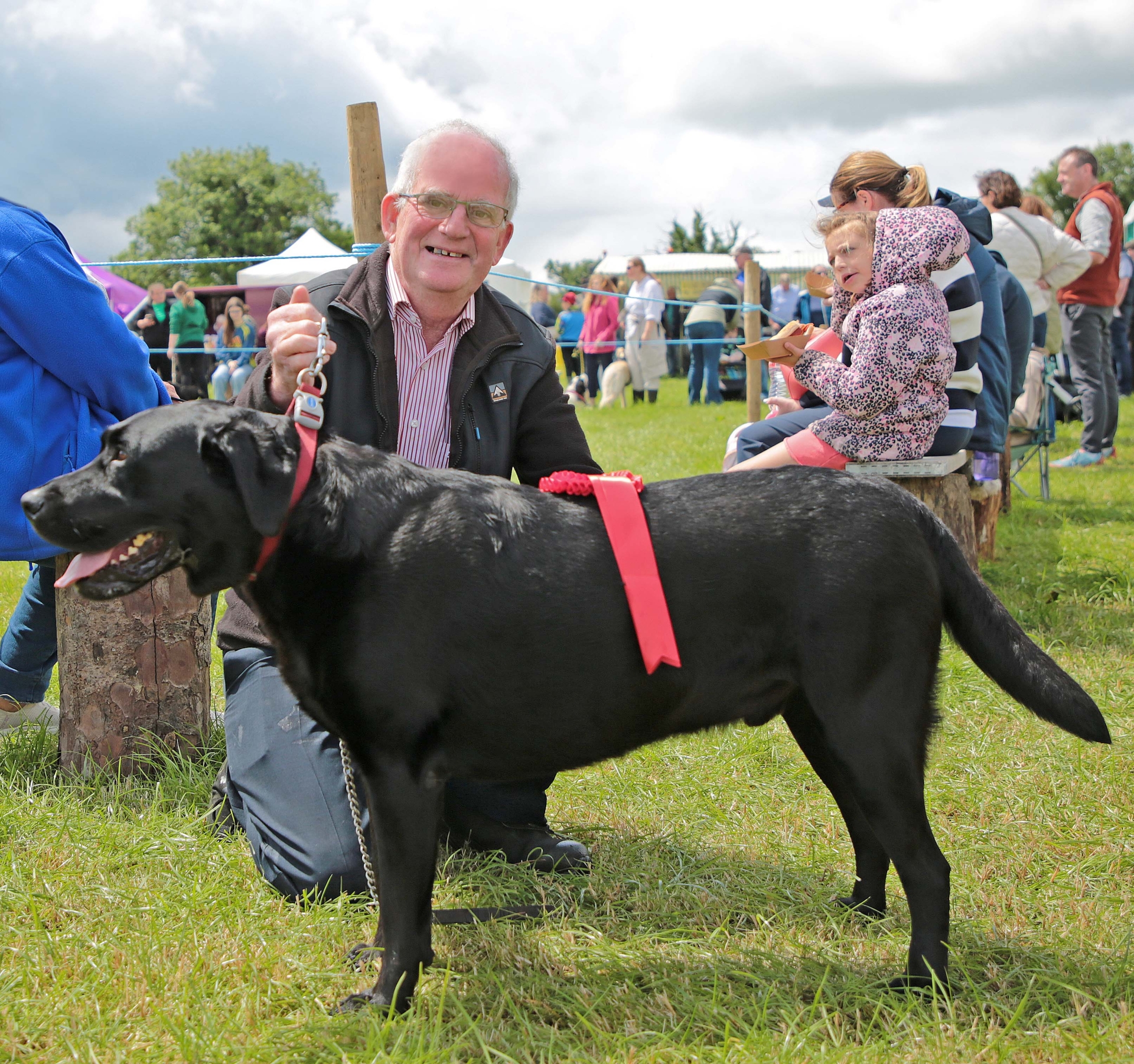 Caption: John Campbell and Henry, winner of Best Working Dog