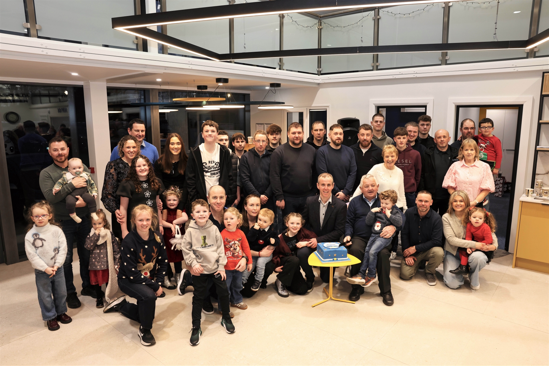 Caption: The Hanley family pictured with their staff and their families at the opening of the new showroom at Peter Hanley Motors, Ballymahon on Friday, December 19 Picture: Syl Healy