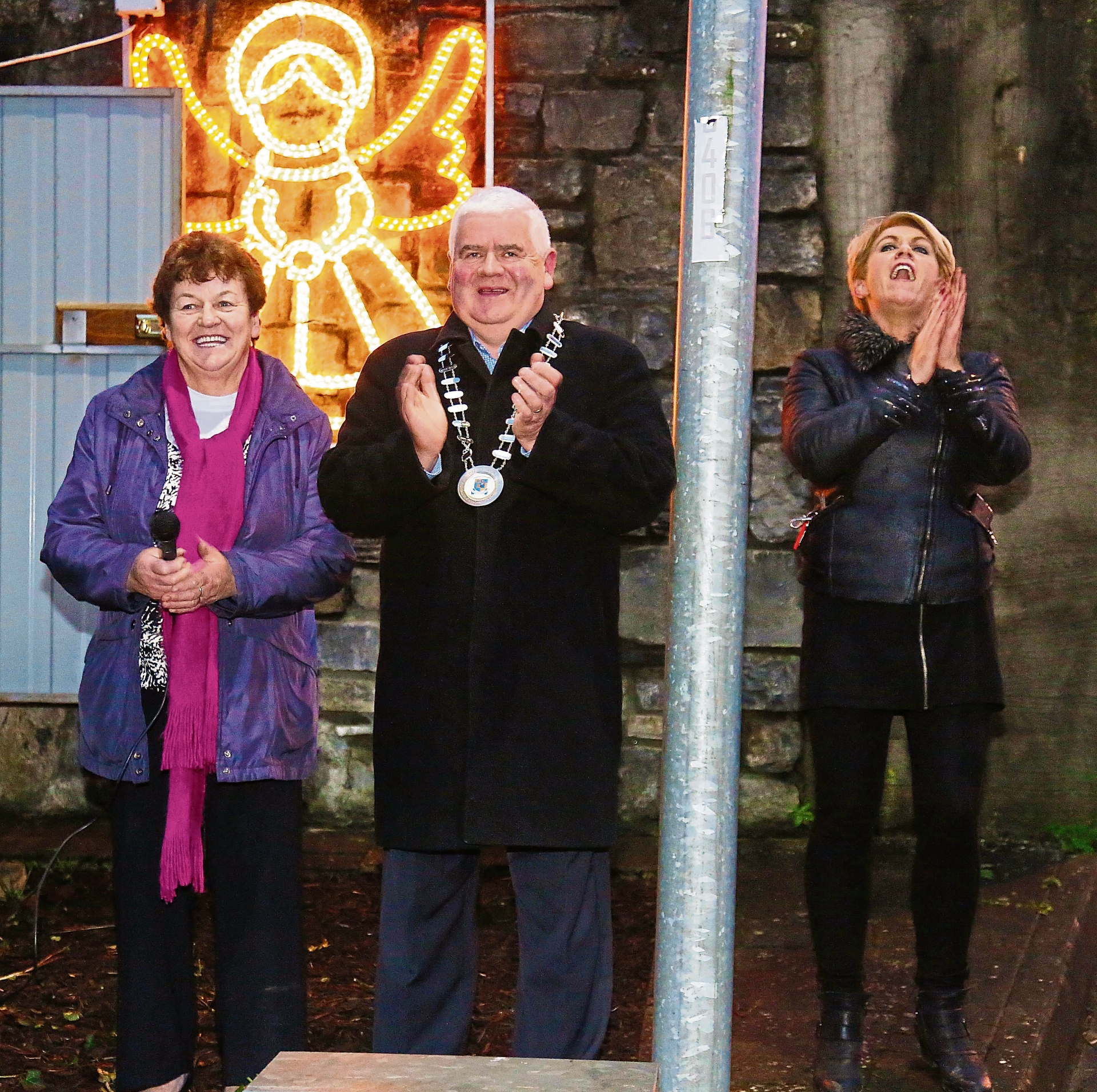 Caption: Granard Christmas Lights switch on 2016 - At the switching on of the 2016 Christmas Lights in Granard were Maura Kilbride Harkin, Cllr PJ Reilly and Fiona Macken. Photo by Shelley Corcoran