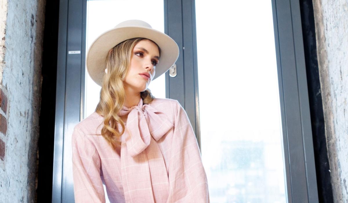 Hat – Wendy Louise Designs (Stand C67) - Longford; and White & gold earrings, Capulet & Montague (Stand C96) - Longford
