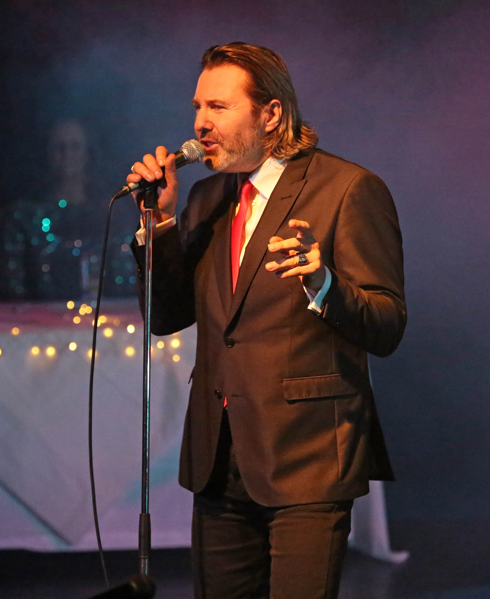Caption: Eddie Valentine as 'Robert Palmer' and performing 'Addicted to Love' at Longford's Backstage Theatre