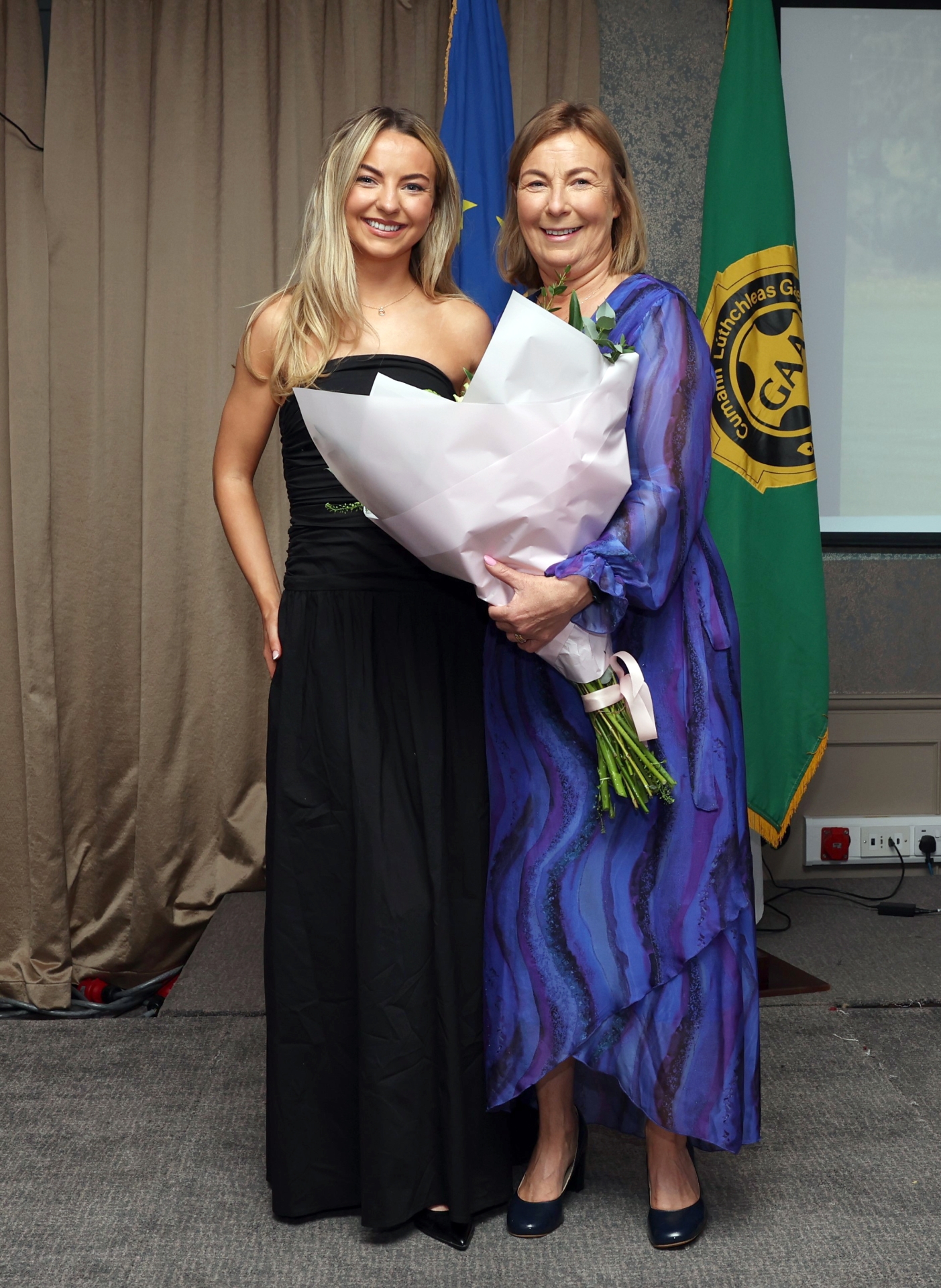 Caption: Orla Nevin presents a bouquet of flowers to her mother Brid. Brid recently concluded her role as Slashers Ladies Chairperson
