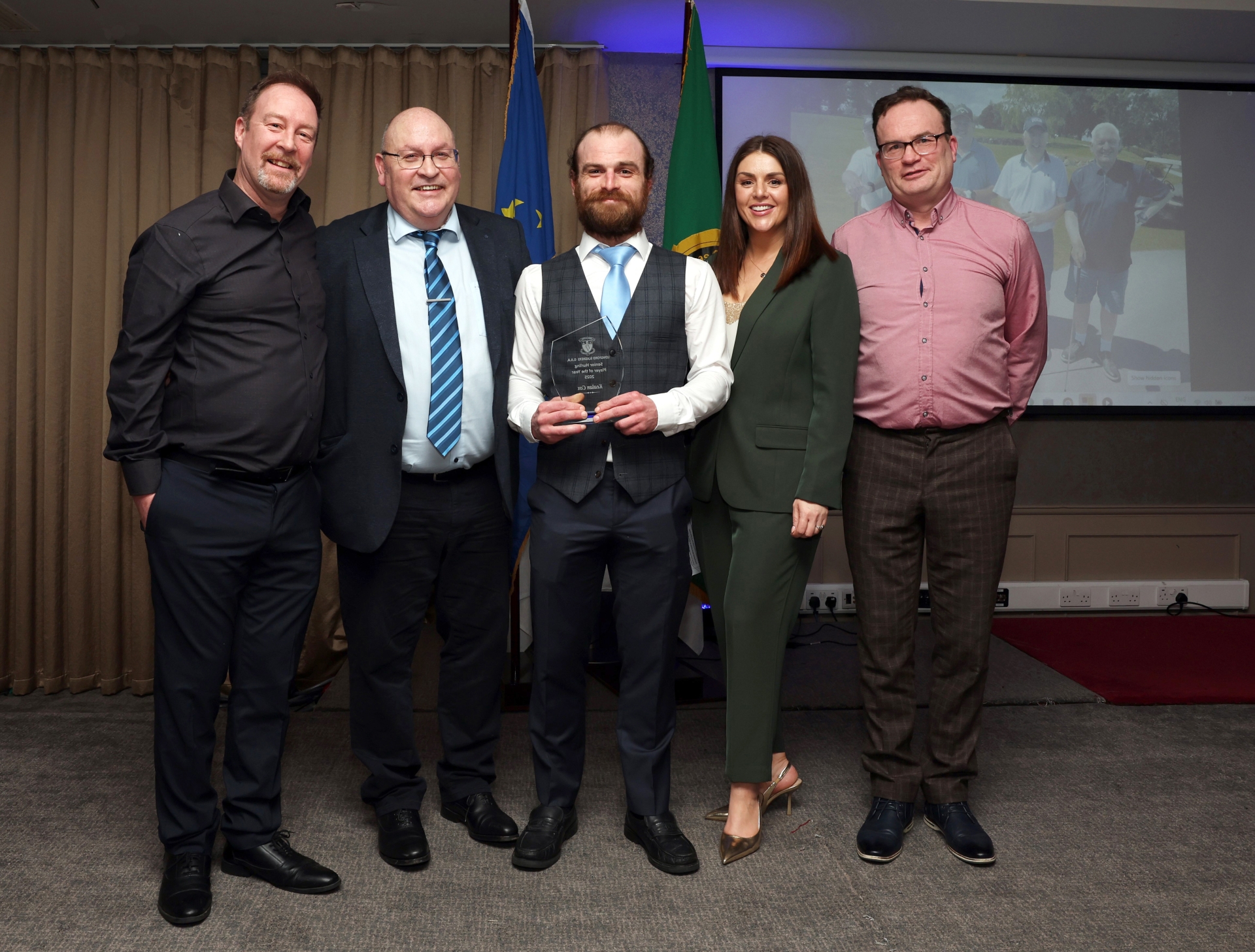 Caption: Longford Slashers Hurler of the Year Keelan Cox with Niall Ward, Pauric O'Donnell, guest MC Sile Seoige and Robbie Stakelum