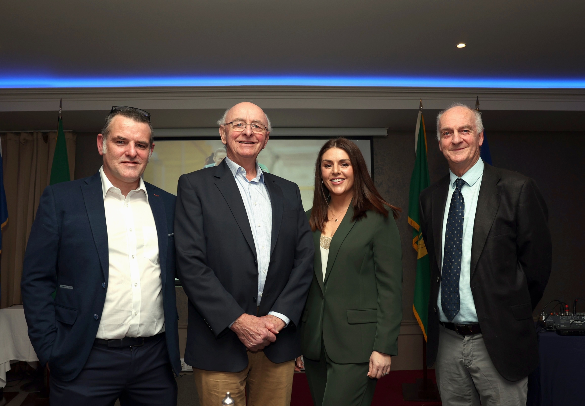 Caption: Slashers Chairperson Eamonn Seoige, Club President Pat Chapman, Special Guest MC Sile Seoige & former Chairperson Kieran Dalton. Picture: Syl Healy