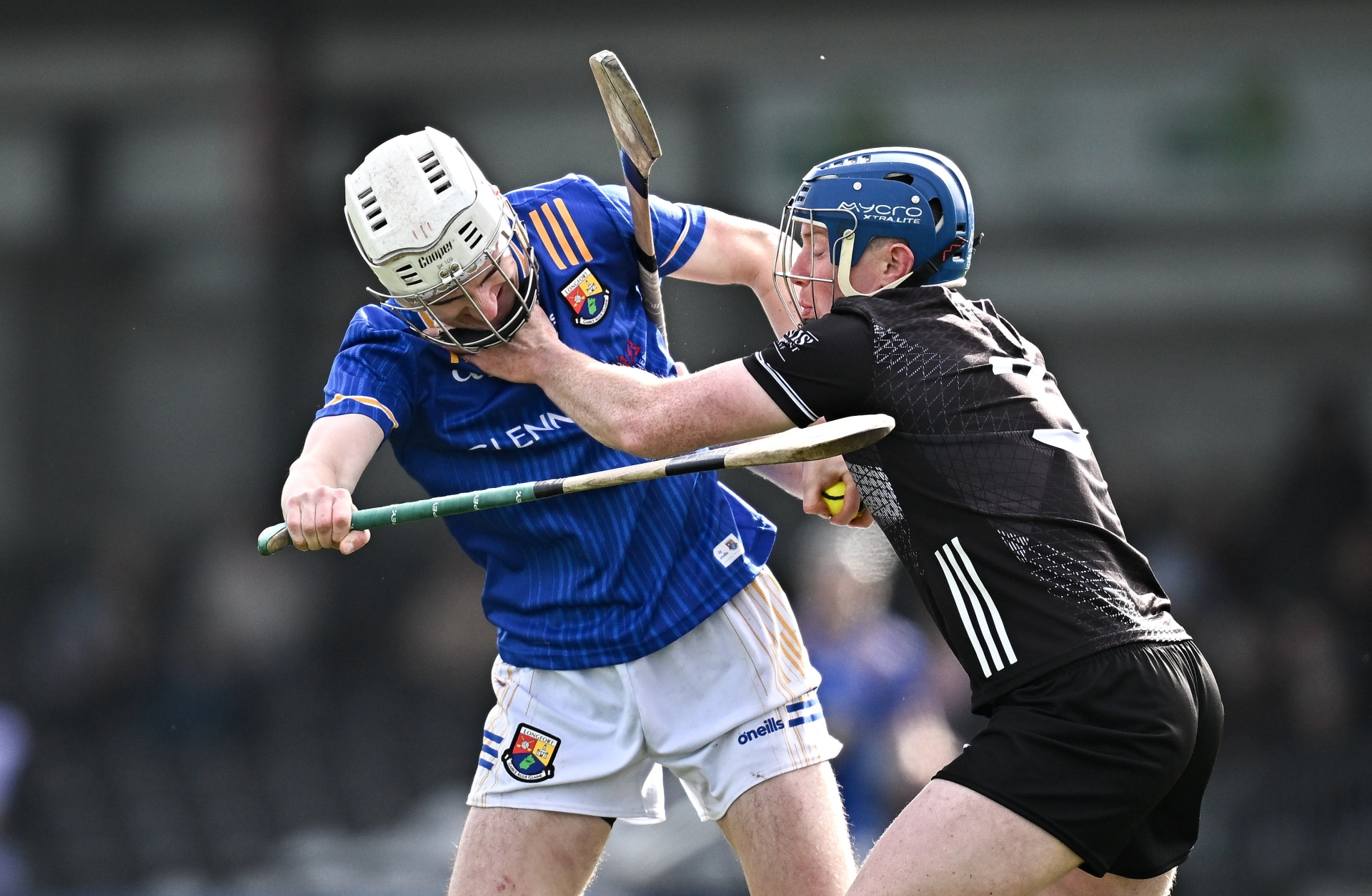 Caption: Dan Crossan of Longford in action against James Weir of Sligo during the Allianz Hurling League Division 4 final match between Sligo and Longford at Markievicz Park in Sligo. Photo by Seb Daly/Sportsfile