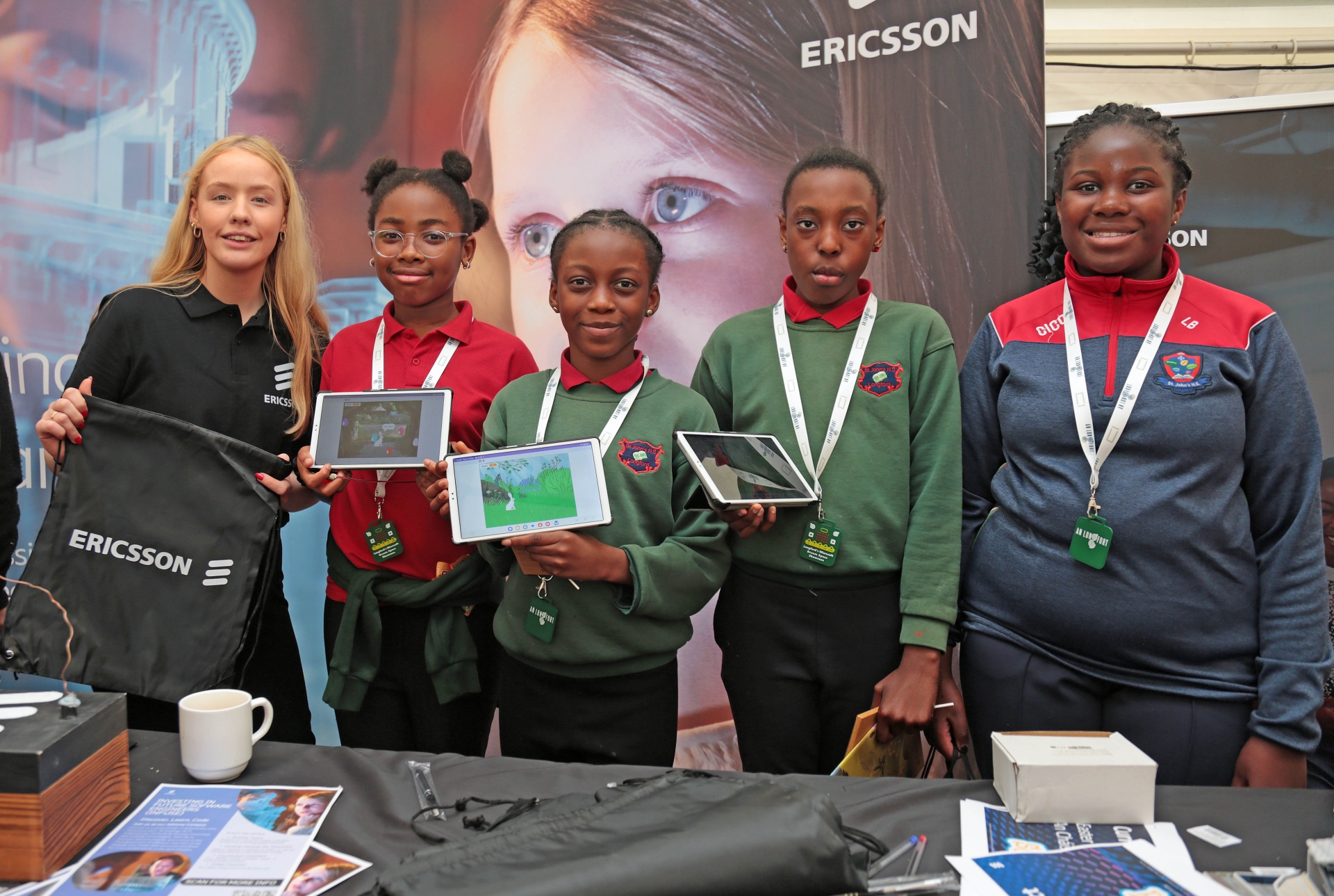 Caption: Pupils from St John's NS Longford with Ericsson representative Lauren McMahon at the annual Longford Microsoft Dream Space Showcase in St Mary's Community Campus, Edgeworthstown. Picture: Shelley Corcoran