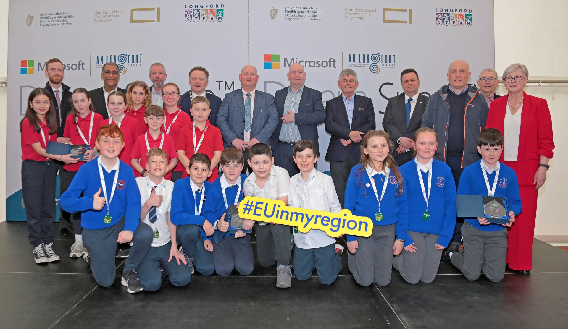 Caption: Climate Action Runners-up St Mary's NS Newtowncashel, Sacred Heart Granard and Scoil Mhuire Newtownforbes Picture: Shelley Corcoran