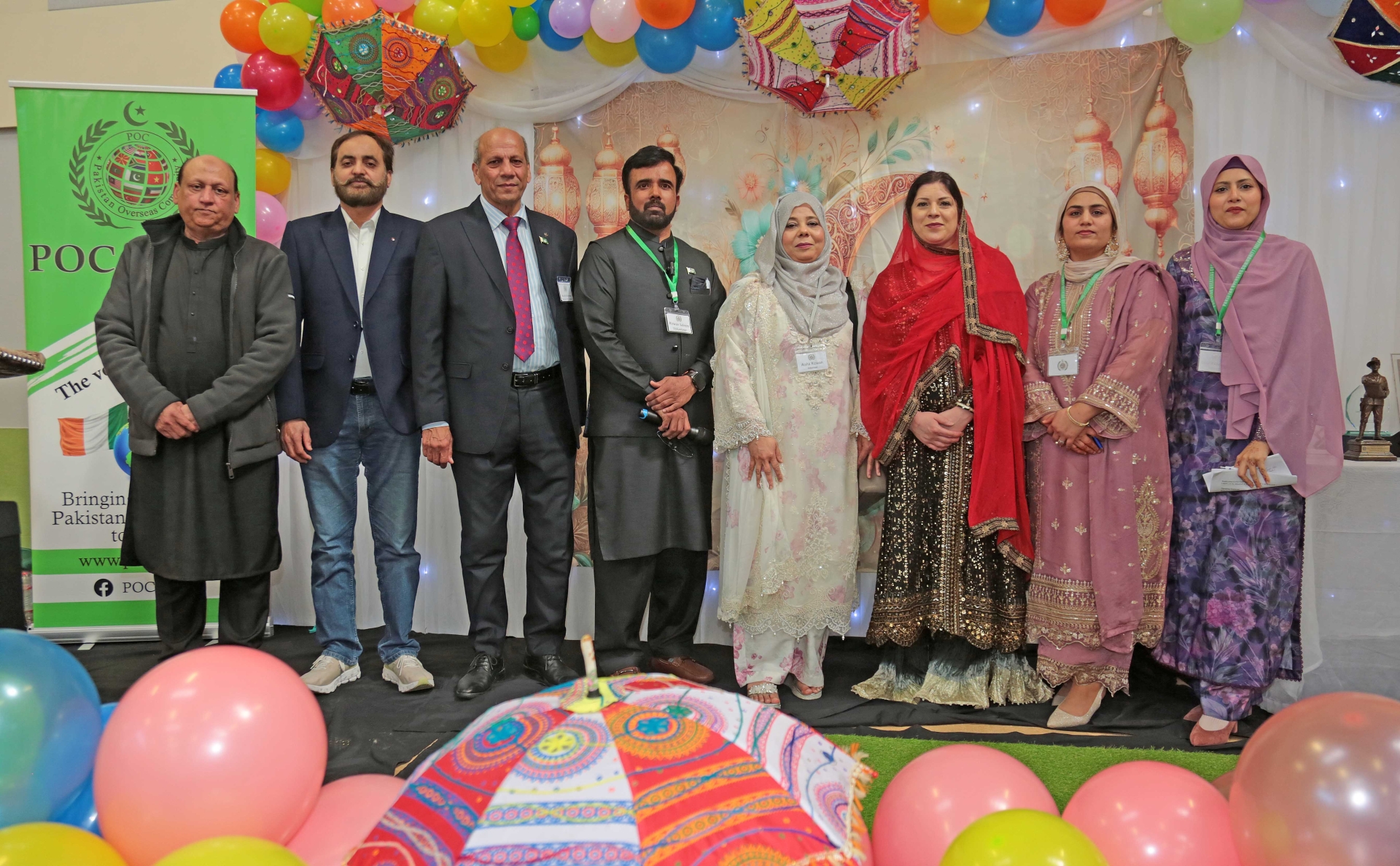 Caption: Members of the Longford POC (Pakistani Overseas Community) team Rizwan Saleem, Mujahid Manzoor (President), Riwan Chaudhry, Asif Chohan, Aish Riawan, Hafsa Hussain (Media Advisor), Madiha Asif (Secretary) and Ramsha Khalid at the POC Midlands Multicultural Eid Festival in St Mary’s Hall, Edgeworthstown on Sunday, March 29