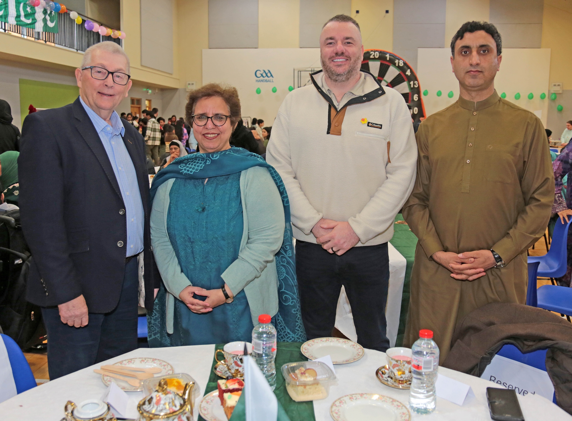 Caption: Cllr Mick Cahill, H.E. Mariam Aftab Ambassador of the Islamic Republic of Pakistan to Ireland, Cllr Kevin Hussey and Shahid Iqbal at the POC Midlands Multicultural Eid Festival, organised by the Longford Pakistani community Picture: Shelley Corcoran