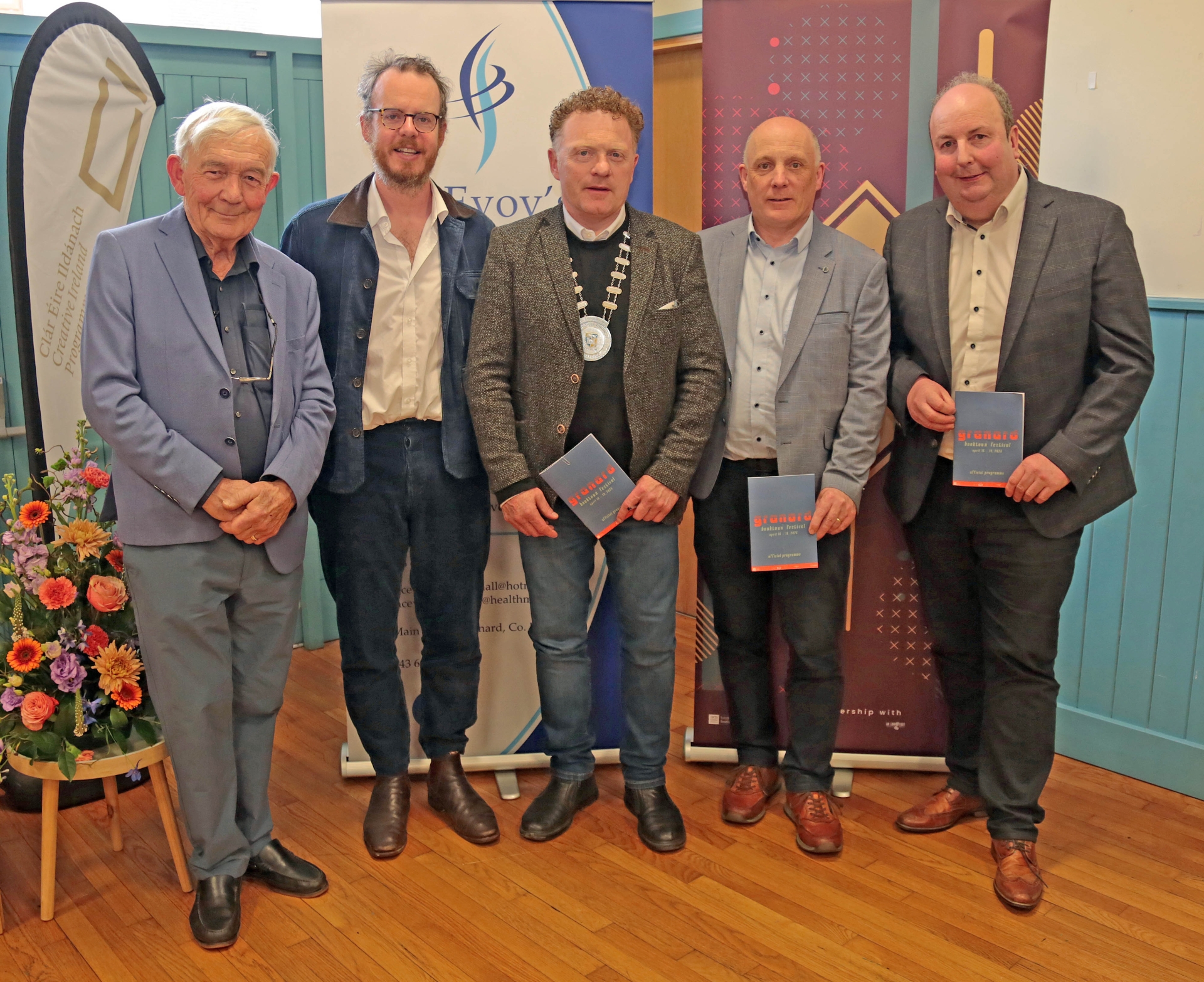 Caption: At the Conor Gearty Memorial Lecture in Granard library as part of the Granard Booktown Festival were Fergus D'Arcy, John Connell, Longford County Council Cathaoirleach Garry Murtagh, Cllr Padraig McNamara and Cllr Colin Dalton Picture: Shelley Corcoran