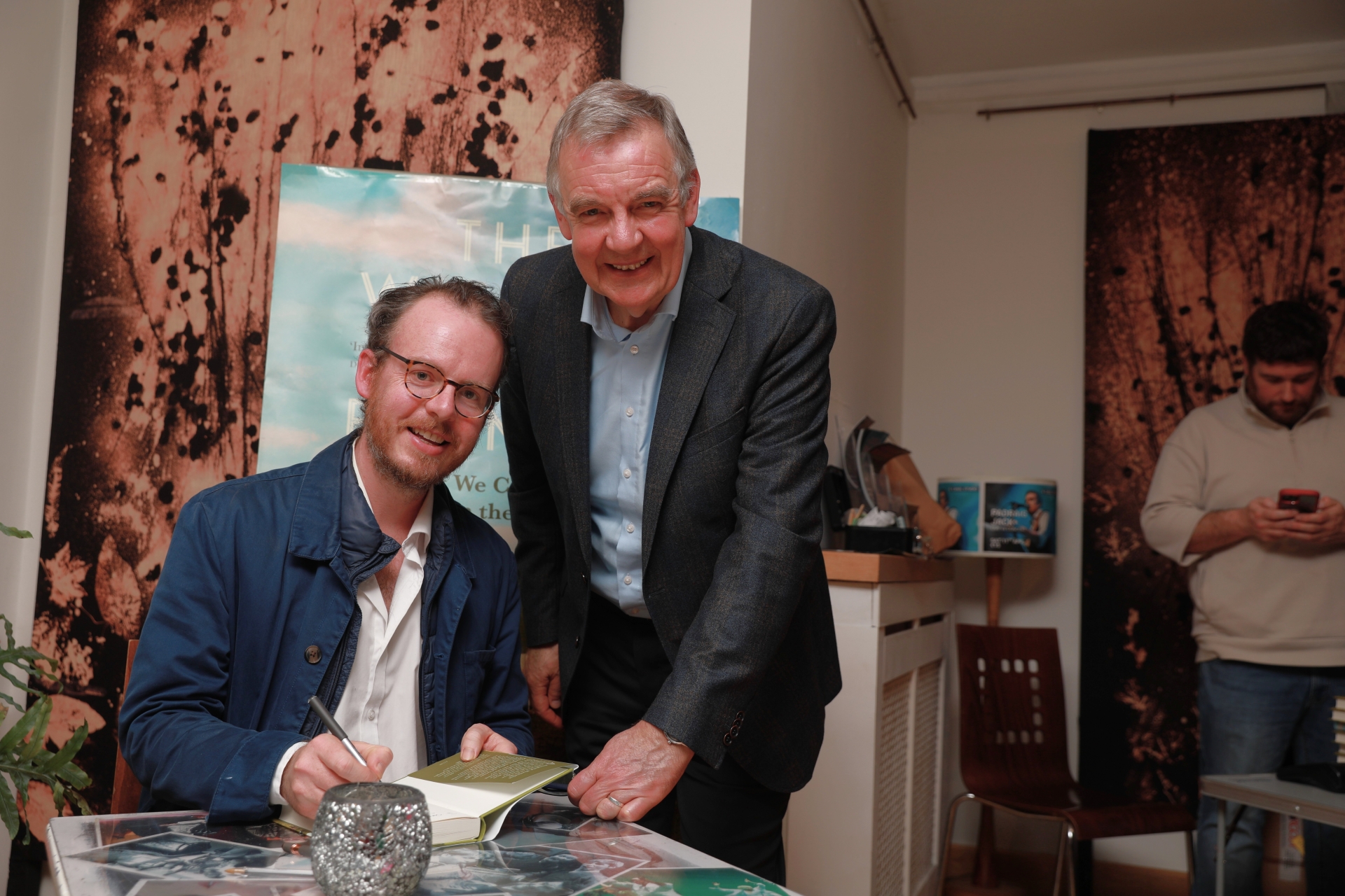 Caption: 'The Wisdom of Farmers' author, Ballinalee's John Connell signing a copy of his book for Bryan Dobson in Longford's Backstage Theatre last Wednesday evening
