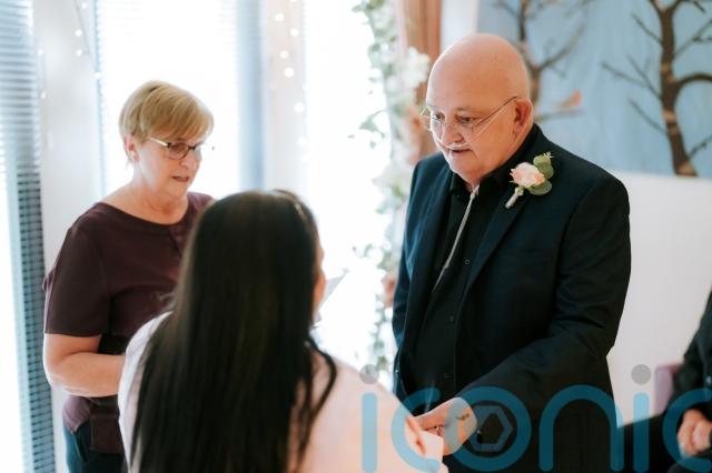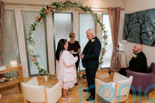 After conversations with hospice chaplain Carol Telfer and other staff, it was decided that the couple would have the wedding ceremony at the Marie Curie Hospice – and everything was arranged in just five days.