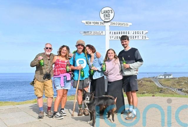 Finley and Reggie reached the end of his 1,300-mile walk in Land’s End, Cornwall, in September and celebrated raising more than £3,600 with his family and friends.