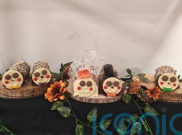 “I just said I want it to be fun and cheap – and I said my kids loved the caterpillar cakes growing up, so she got some of those for me and put on orange bowties to match what my husband and sons were wearing,” Louise added.