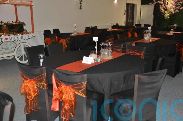 This included artificial flowers, candles for the tables, signs and canvases of the couple.