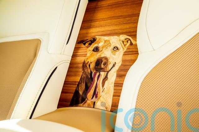 Inside, there’s a leather interior which combines moccasin and creme light upholstery colours, which blend together with dark brown accents to recreate Bailey’s fur colour. Then, in the middle, there’s a portrait of the dog, created within 180 pieces of veneer. Overall, the process of creating this element took more than four months to finish.