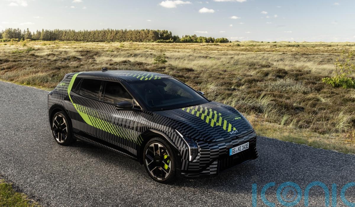 Kia has released images of the upcoming EV4 GT electric hot hatch on the firm’s new ‘GT Wrap’ prototype testing mule.