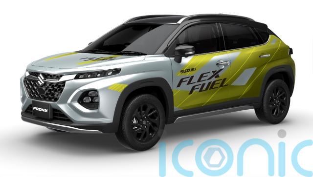 Next up, Suzuki will be displaying its new Fronx FFV2, which stands for ‘Flexible Fuel Vehicle’. The FFV2 is a compact SUV that is a similar size to the firm’s combustion-powered Vitara and features roof bars, chrome exterior trim, black alloy wheels and black door mirrors.