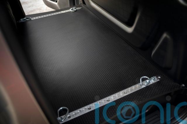 The rear seats have been removed, along with the seatbelts and back windows, with a full bulkhead put in place with aluminium panels covering the holes left by the windows. All versions get a heavy-duty loadspace liner and anchor points for tying down loose items.