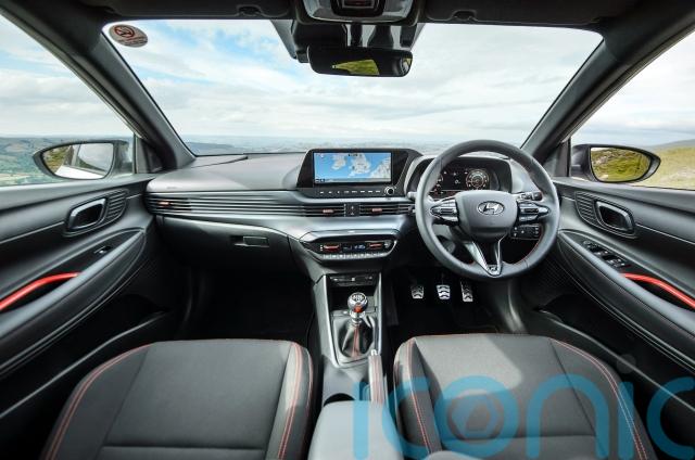 The interior is a bit tamer than the exterior, though there are various reminders that you’re in something a little racier than a standard i20. There’s a sports steering wheel with red stitching, with that red theme continuing across the cabin – most pleasingly on the air vents and temperature controls.