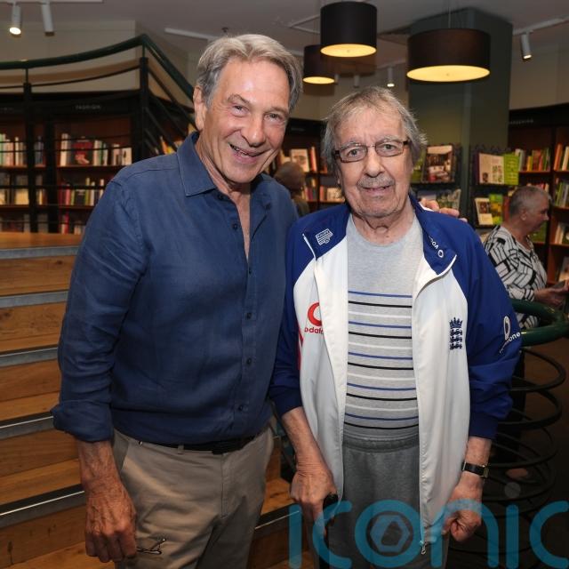 Former Rolling Stones bass player Bill Wyman also joined Brandon at the event wearing an England cricket jacket, striped shirt and grey trousers.