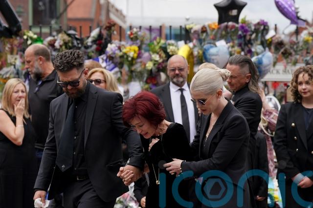Osbourne’s family emerged from the cortege when it arrived at the bench and bridge which was bursting with floral tributes, balloons and messages from fans.
