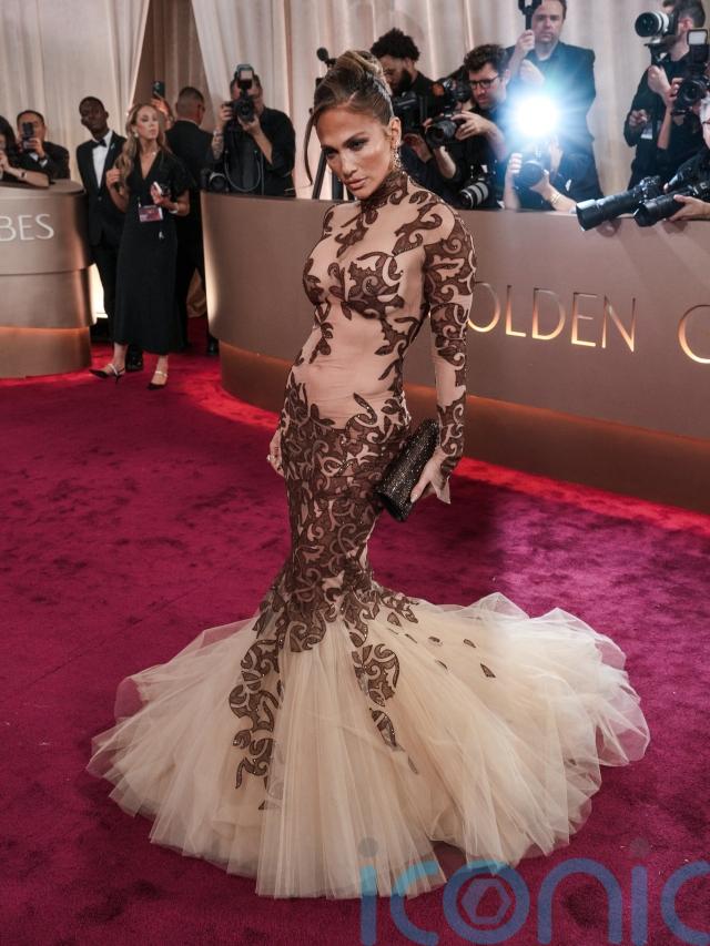 Jennifer Lopez also opted for a dramatic nude-coloured archival Jean Louis Scherrer haute couture gown from 2003, with glistening brown detail and a fishtail skirt.