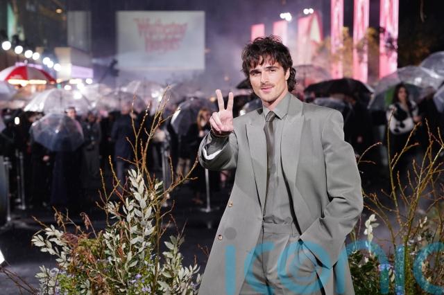 The actor appeared on the red carpet for the London premiere of Wuthering Heights on Thursday evening in a sage green suit with a matching tie and coat.