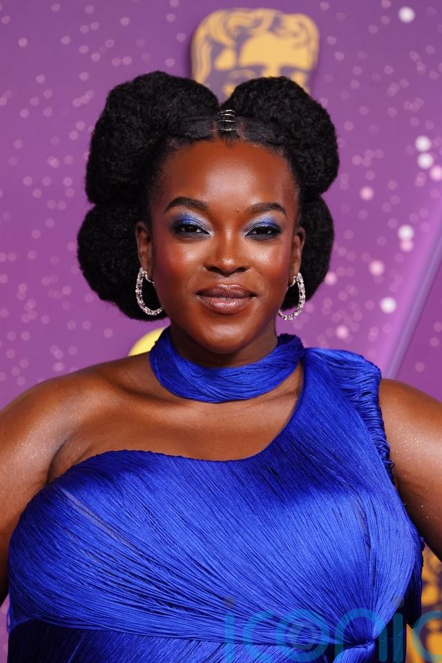 Sinners star Wunmi Mosaku wore a shimmering bright blue dress, complemented by her matching blue eyeshadow, as she walked the red carpet.