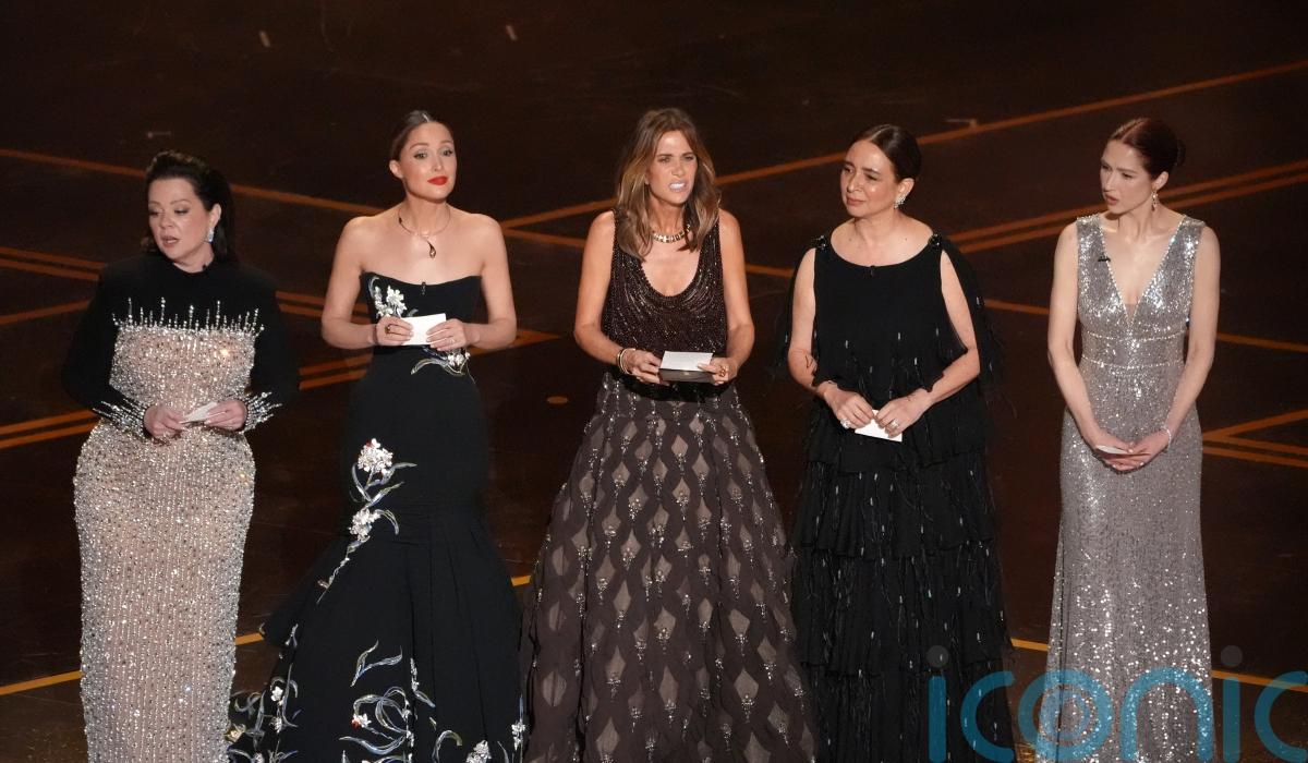 Bridesmaids cast reunite on Oscars stage and read out fake audience notes