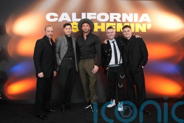He was also joined on the red carpet by Rebekah Murrell who portrays the hip-hop group’s agent Tessa, who wowed crowds wearing a monochrome striped gown.