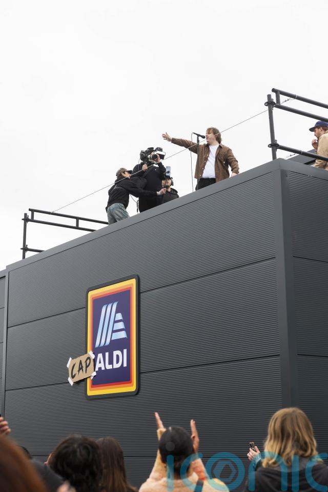 Capaldi, 28, performed his new single, Something In The Heavens, from the shop in Nottingham, which rebranded its name to “Cap-Aldi” with a makeshift cardboard sign.