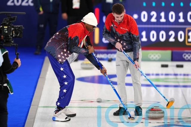 The rapper, who is an honorary coach for Team USA as well as a special correspondent for broadcaster NBC, attended the curling mixed doubles match to watch the US team beat Canada in their event.