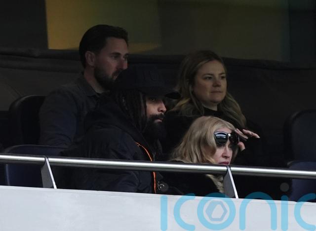 Wearing a black coat and matching sunglasses, the Like A Virgin singer was in the stands as the home team lost 2-0 to Chelsea on Sunday afternoon.