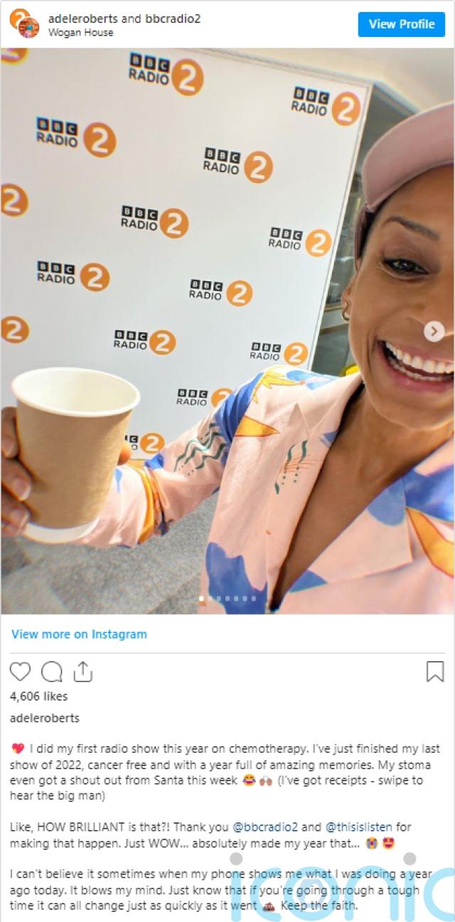 BBC radio DJ Adele Roberts has celebrated presenting her final show of 2022 free of cancer after a year “full of amazing memories”.