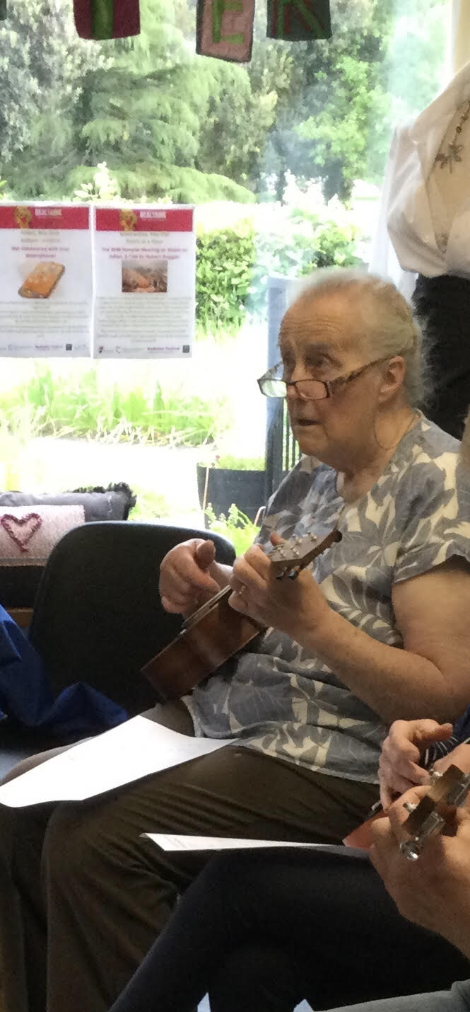 Mary O'Hanlon taking part in one of the Bealtaine Festival ukulele classes at Clonmel Library