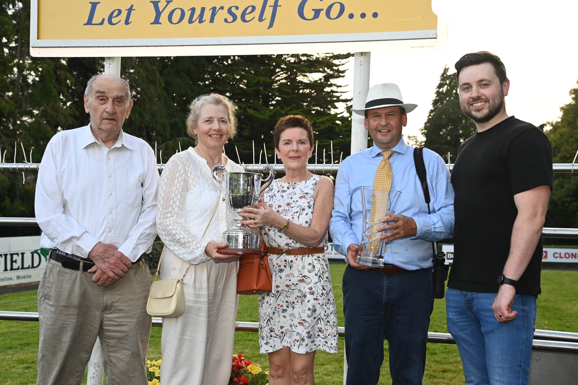 John O’Brien’s daughter Margaret and grandson John made the trophy presentations to the trainer’s wife Una, who is the successful owner, and O’Donnell’s father PJ.