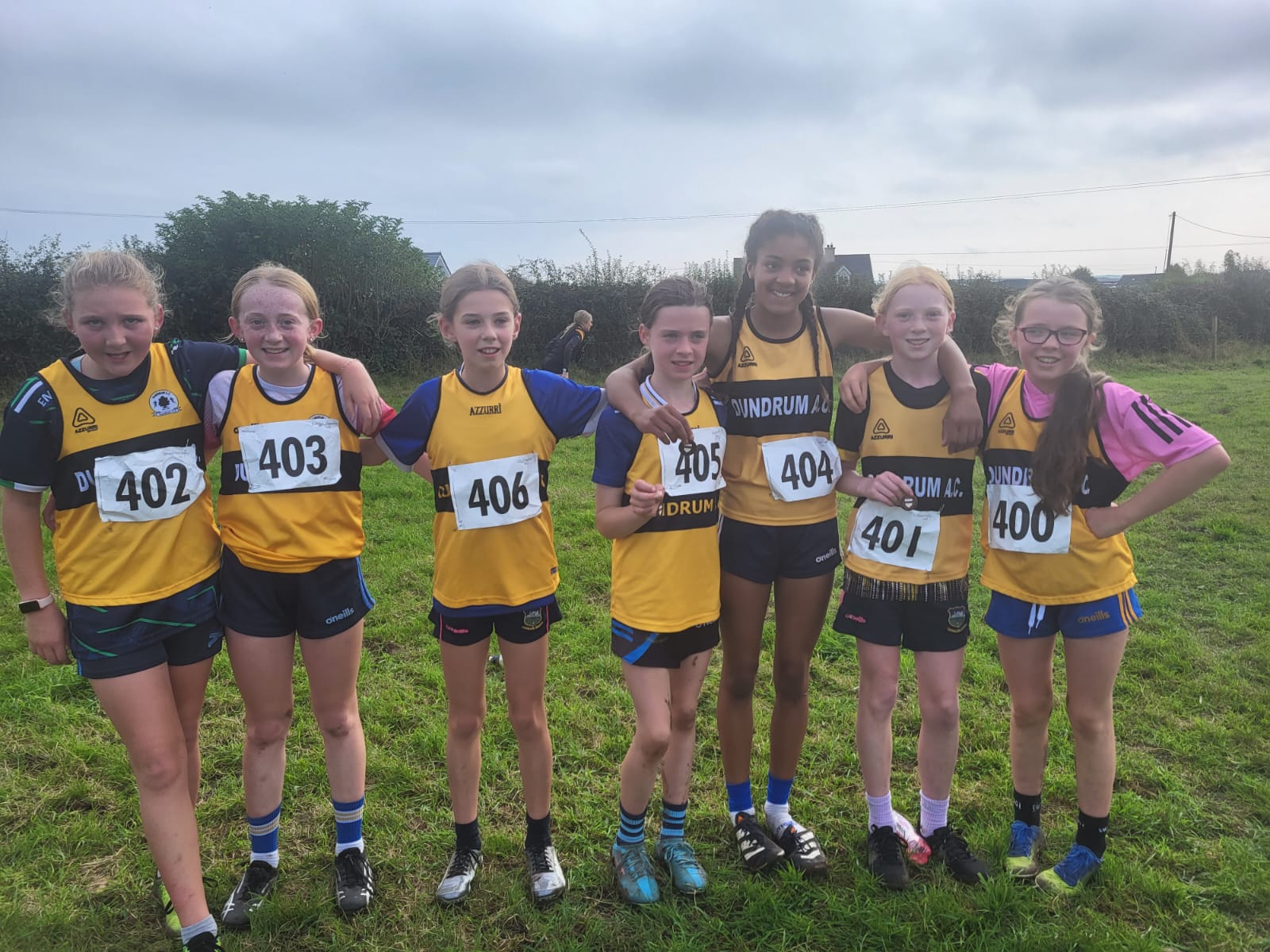 The under 13 girls who represented Dundrum AC at the County Uneven Age Juvenile Cross Country Championships in Moyne on Sunday last.
