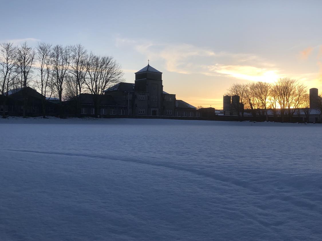 The snow covered grounds of the Abbey School in Tipperary Town