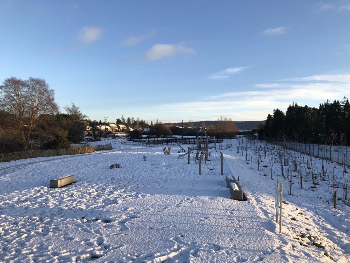 The snow covered Playground by the River Ara Walkway in Tipp Town